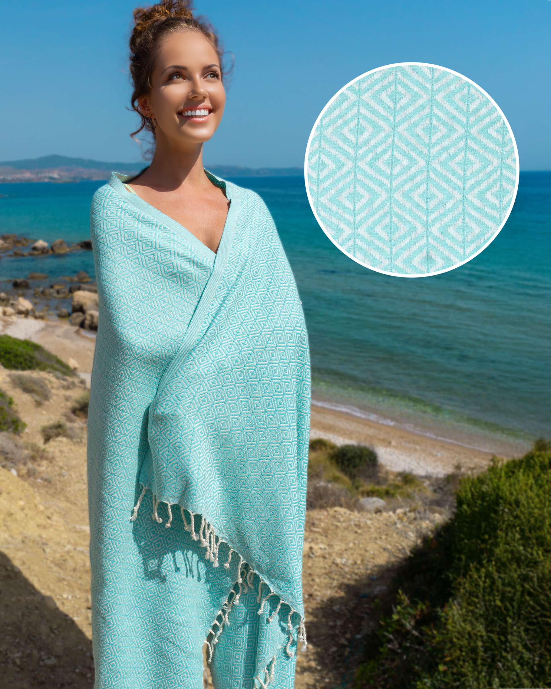 The Samimi Hammam Towel in an elegant beige shade embodies timeless sophistication and natural warmth, making it a versatile addition to your daily routine. Whether used as a towel, scarf, shawl, or throw, it seamlessly transitions from the beach to the bath, the gym to travel, and even home décor. Woven from 100% Oeko-Tex certified cotton, it offers exceptional absorbency, quick-drying properties, and a luxuriously soft texture that improves with every wash. Its lightweight and compact design makes it the perfect travel companion, while its sand-resistant feature ensures hassle-free beach days. Handcrafted on Türkiye’s Aegean Coast with exquisite diamond patterns and hand-twisted fringes, this eco-friendly peshtemal is a sustainable, stylish, and durable alternative to conventional towels.